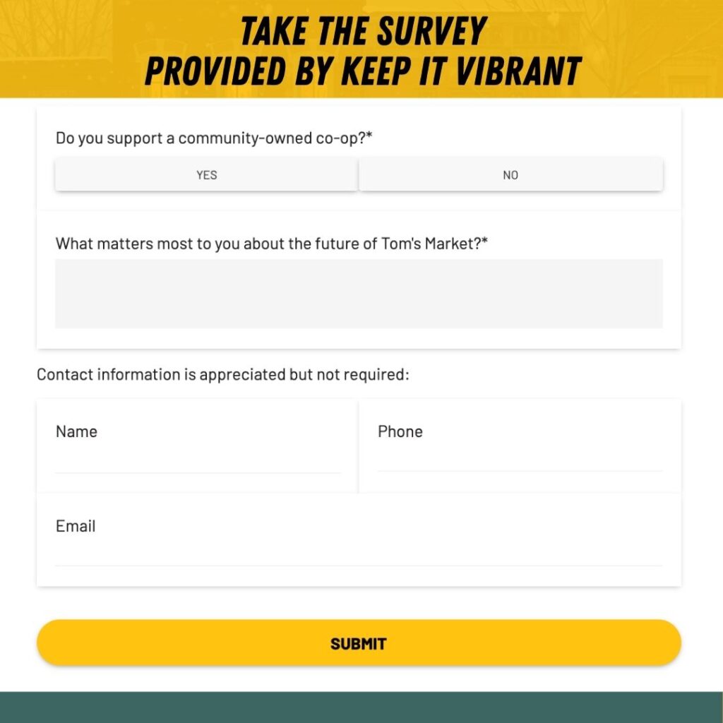 Regardless of the grocery store’s name or ownership structure, community support and patronage are essential for sustainability. Active participation, shopping locally, sharing input, and attending meetings directly influence economic development in Greene County and the long-term success of downtown Yellow Springs, and the community as a whole.