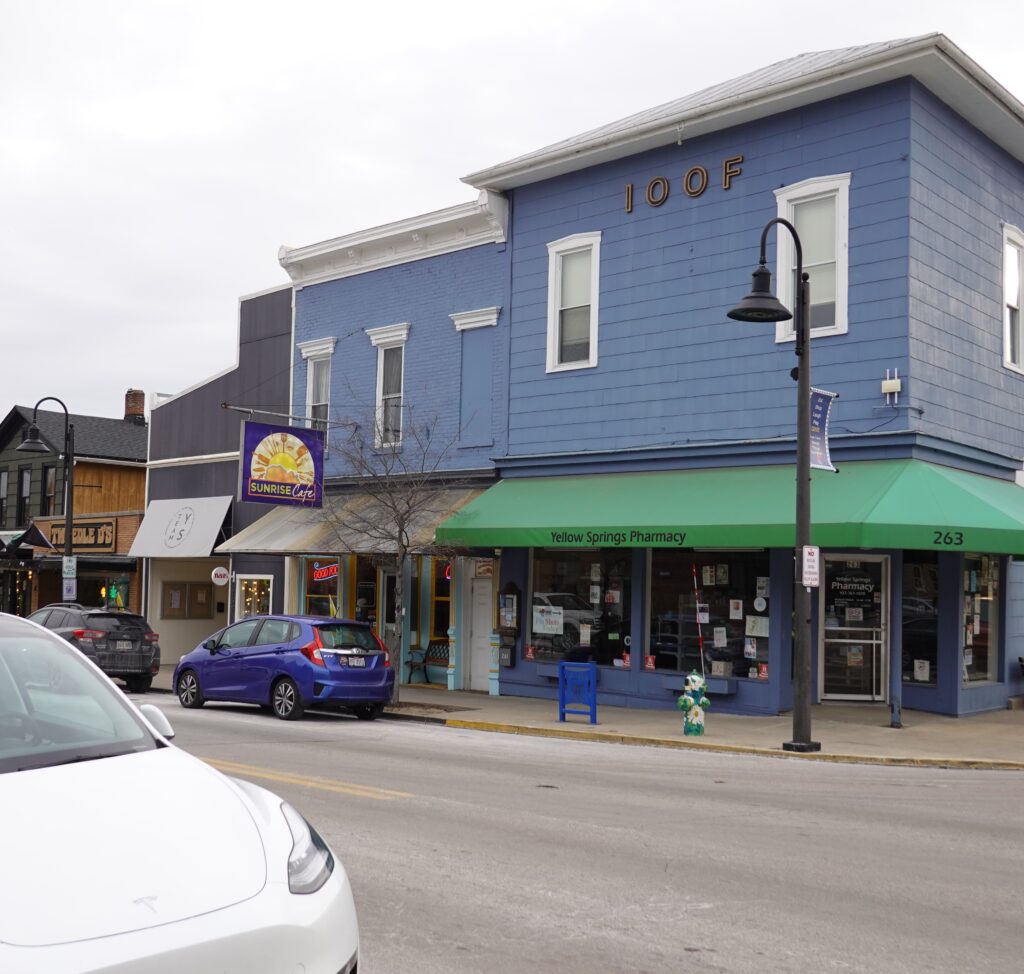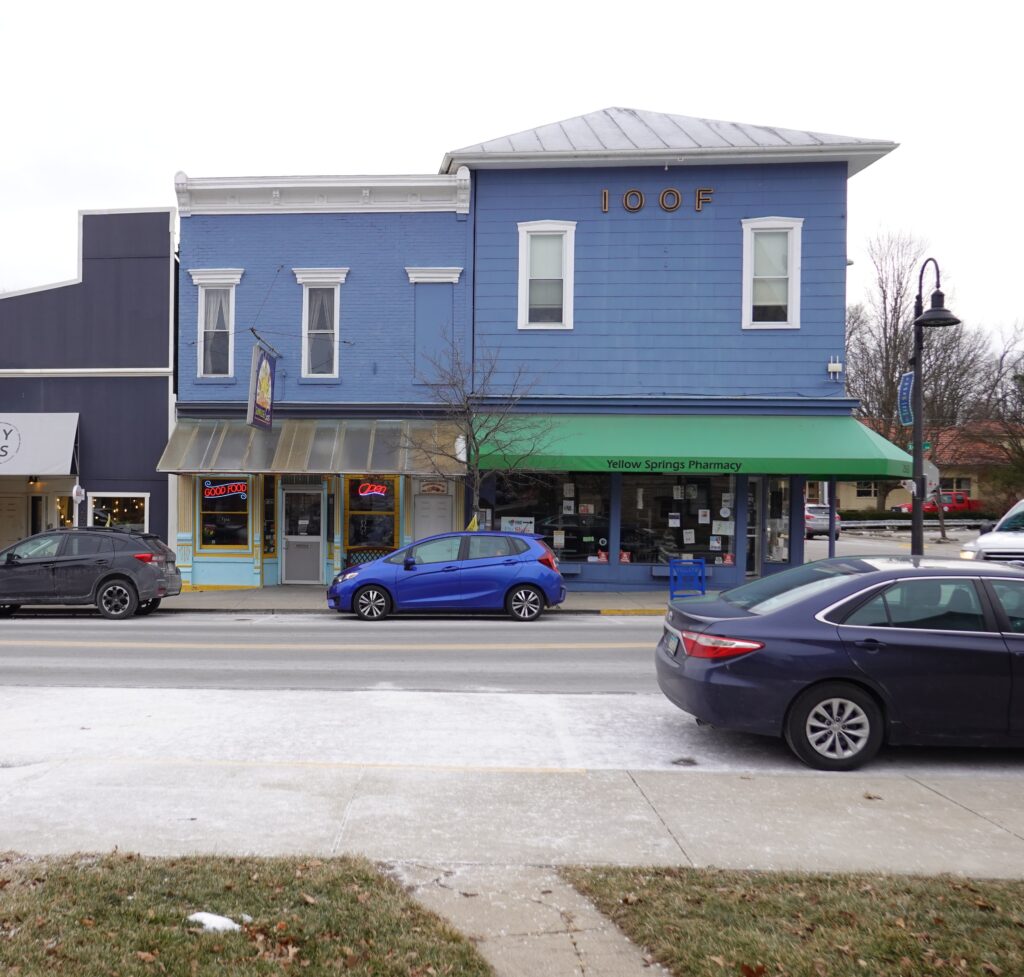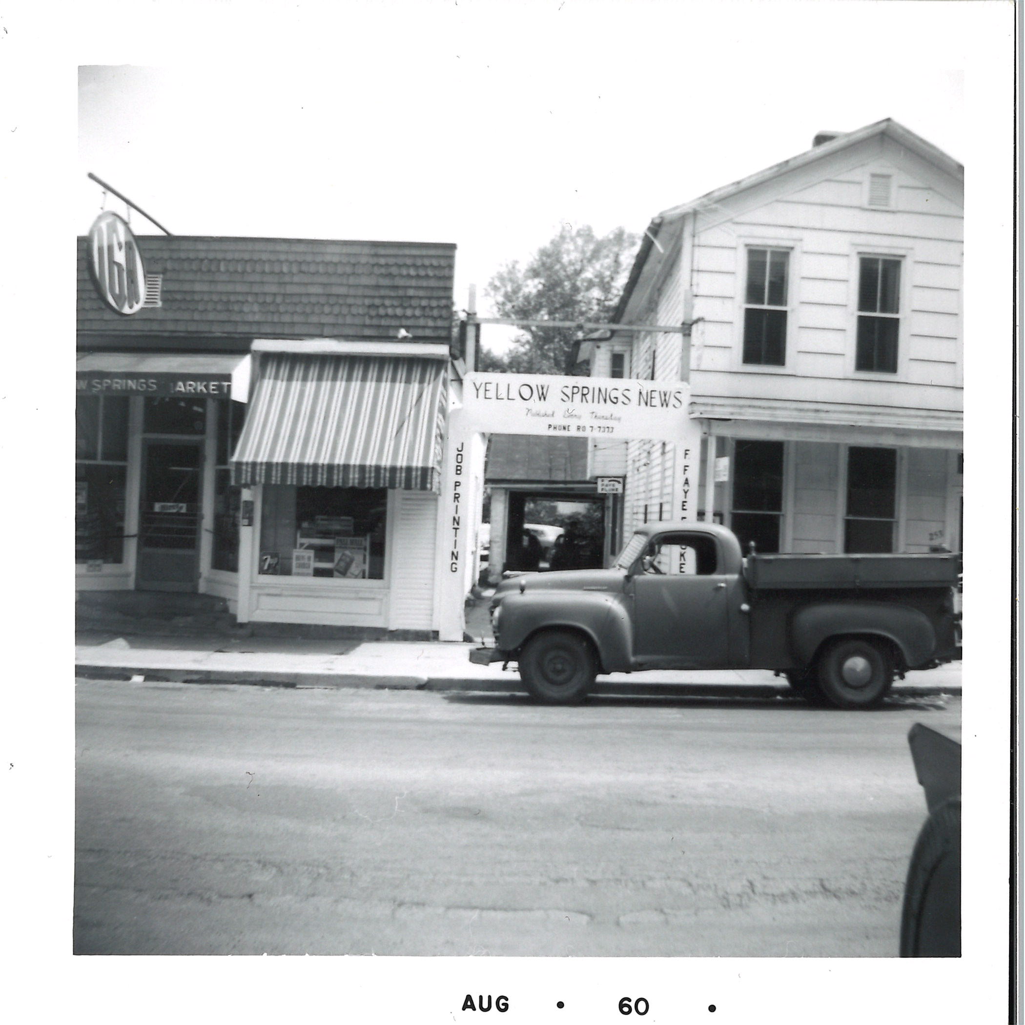 When this photo was taken, these buildings housed Dick & Tom’s restaurant and Erbaugh & Johnson Drugs. Today, in the same buildings, you can find Sunrise Cafe and Yellow Springs Pharmacy.