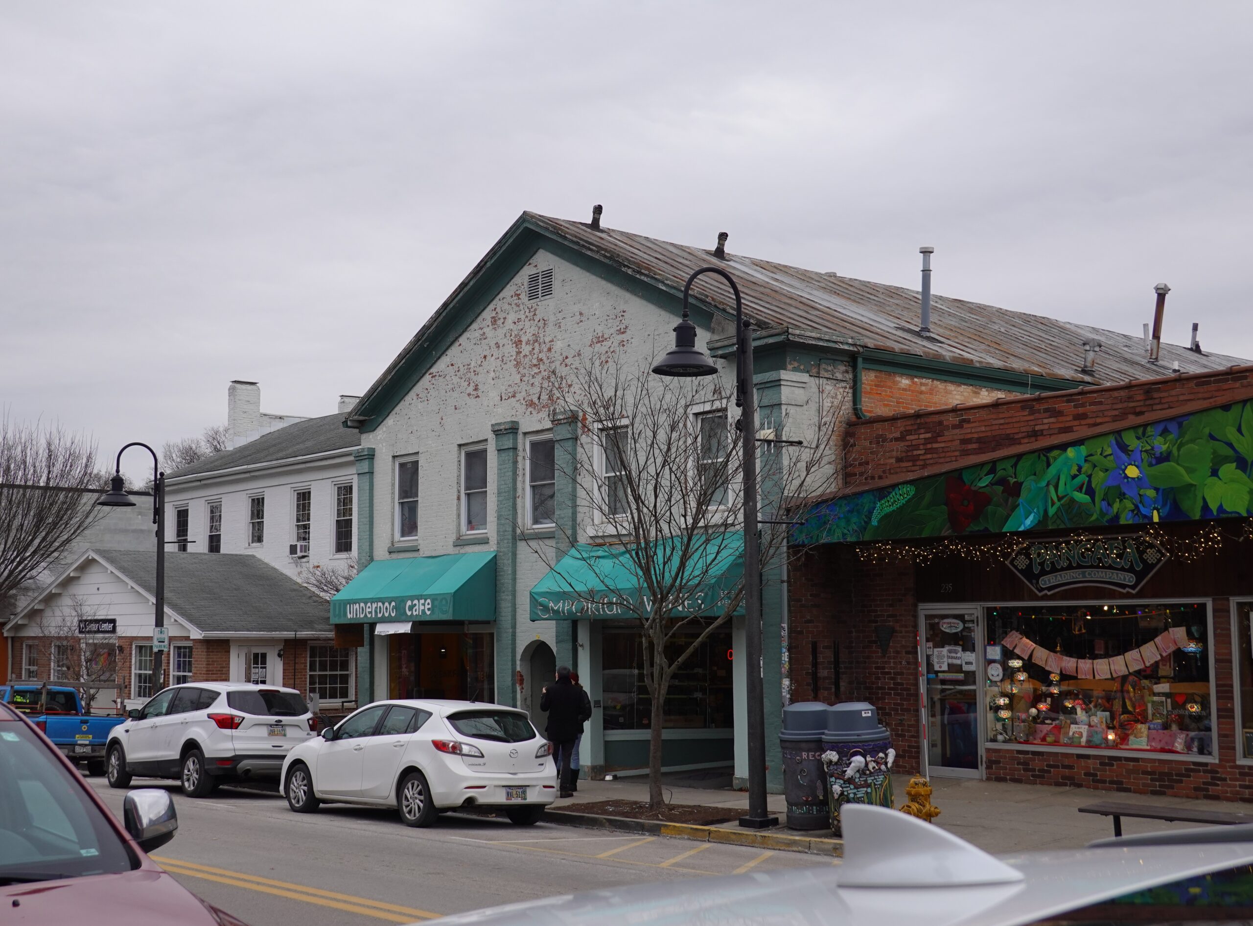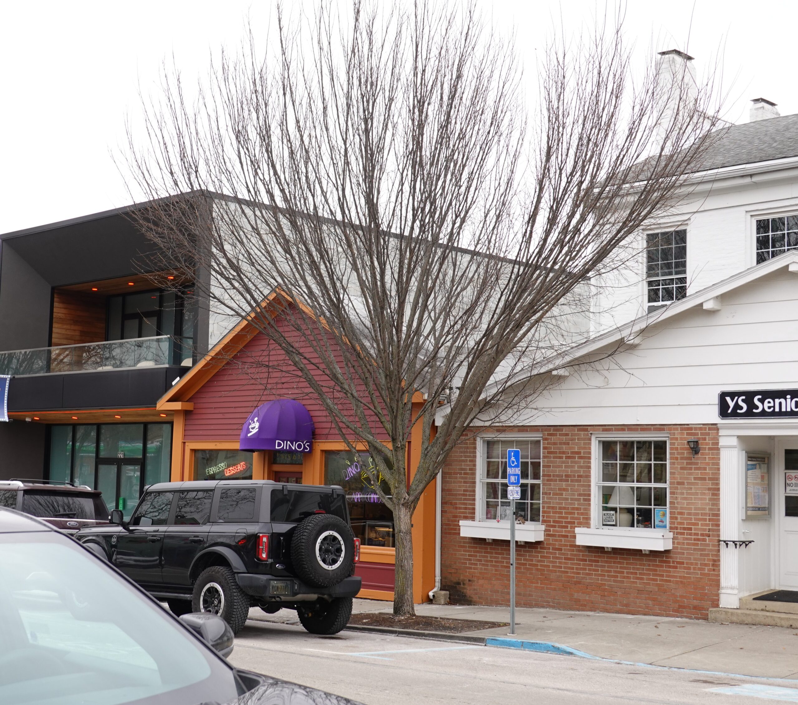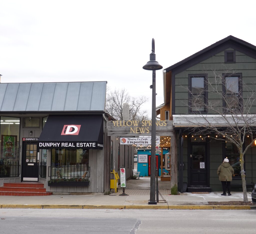 When this photo was taken, these buildings housed Dick & Tom’s restaurant and Erbaugh & Johnson Drugs. Today, in the same buildings, you can find Sunrise Cafe and Yellow Springs Pharmacy.