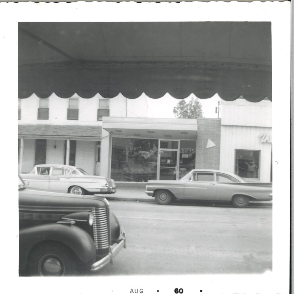 Furay’s Gift Shop opened after their drug store was sold in 1955. In this image, the store is having a sale. The building is the same as what sits there today and now holds Unfinished Creations. The triangle on the wall to the right of the door is still there.
