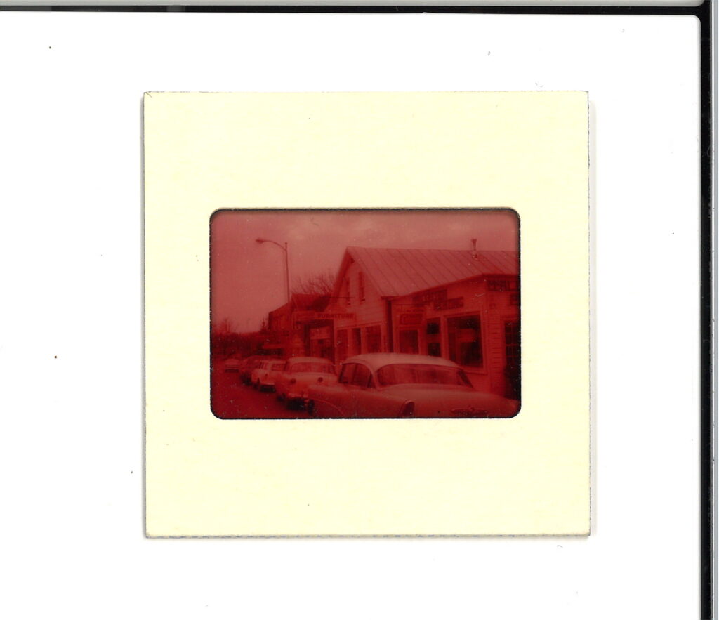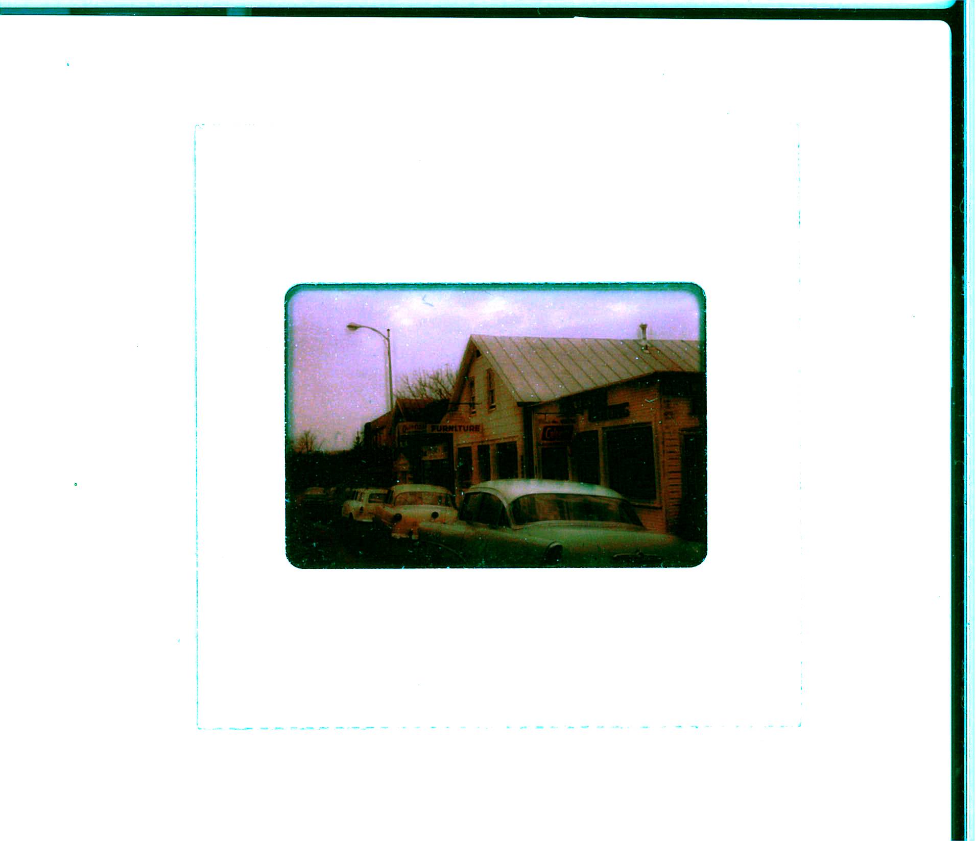 Pictured here are Glen Cafe, YSCU, Model Dry Cleaning & Laundry, the furniture store building, and McAllister Plumbing & Heating.